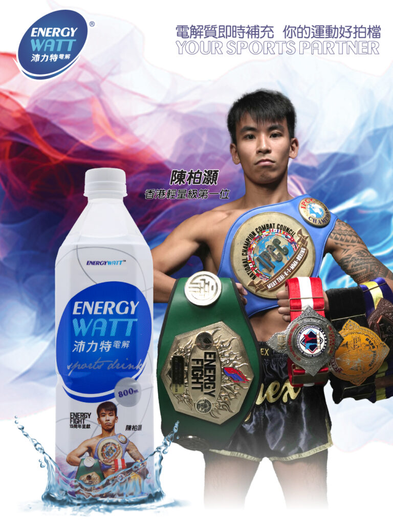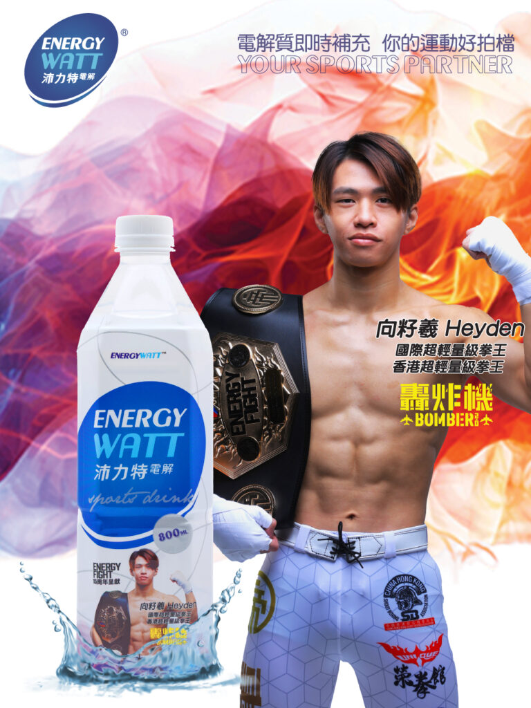 印有綜合搏擊超輕量級拳王-向籽羲、國際綜合搏擊羽量級拳王-向籽嬴、香港綜合搏擊沉量級第一位-謝傑丞、香港綜合搏擊輕量級第一位-陳柏灝的拳王特別版EnergyWatt正在各大零售商及便利店熱賣中!